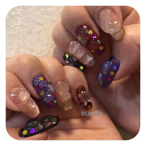ダイソーで購入したネイルパーツを使用したネイルです(セルフ) 夏から発売されていたようですが最近購入しました 太陽光、UVライトにあたると変化します! 夏にピッタリ 色が変わる!?不思議なネイルパーツ 半透明のパーツが、太陽光やUVライトに当たると…